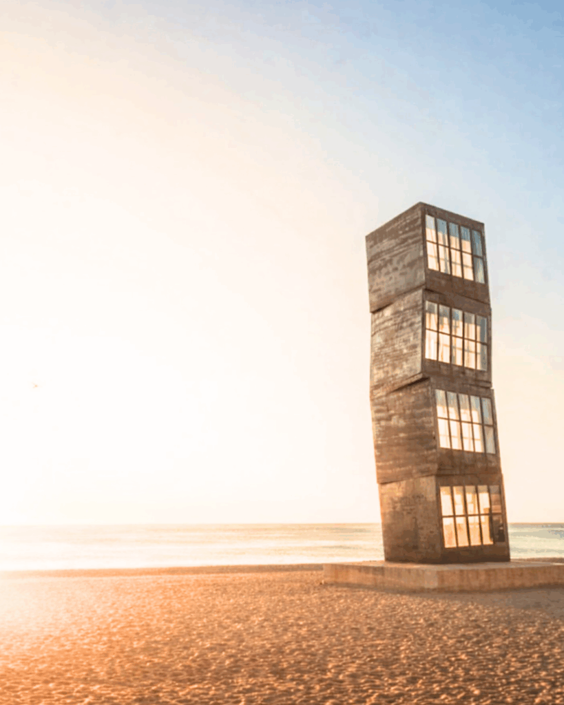 La obra simboliza los antiguos chiringuitos de la playa y representa la memoria histórica del barrio marinero. Además, su ubicación frente al mar la convierte en uno de los lugares favoritos para fotografiar el skyline costero de Barcelona. Visitar la Barceloneta es imprescindible para disfrutar del ambiente mediterráneo y de uno de los paseos marítimos más animados de la ciudad.
